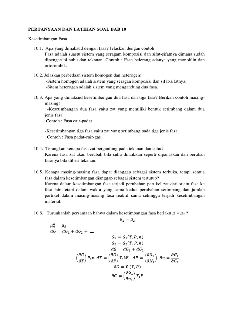 Contoh soal dan jawaban kesetimbangan fasa.