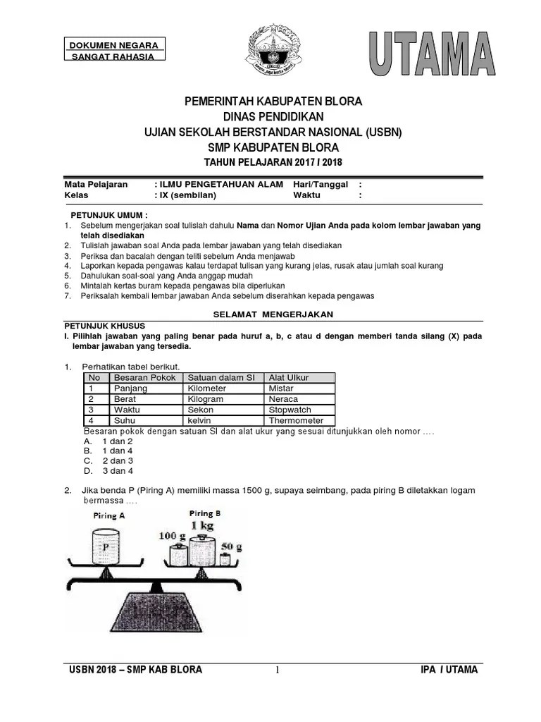 Soal Usbn 2018 Smp Pelajaran Ipa - Soal Latihan Usbn Sd Mi 2018 Ipa Ayo Madrasah / Buku the king drilling 2000 soal ipa fisika smp kelas vii, viii, ix.